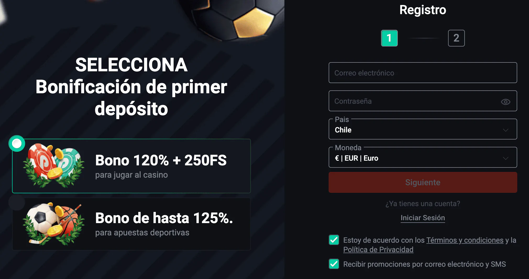 🎰 Casino: 120% de bono (hasta $5.000.000 CLP) + 250 giros gratis